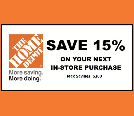 15% Off Home Depot Coupon Online - August 2022 - We Are Coupons Coupon will provide a 15% discount off entire order- at HomeDepot.com Max Discount is $200 Code is pre-validated and ready to use online at HomeDepot.com One (1x) Home Depot 15% Off coupon, delivered instantly to your registered email address after payment. Be sure to check your JUNK or SPAM folder if you can't find it.